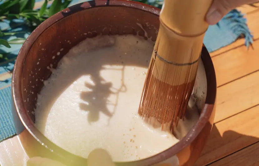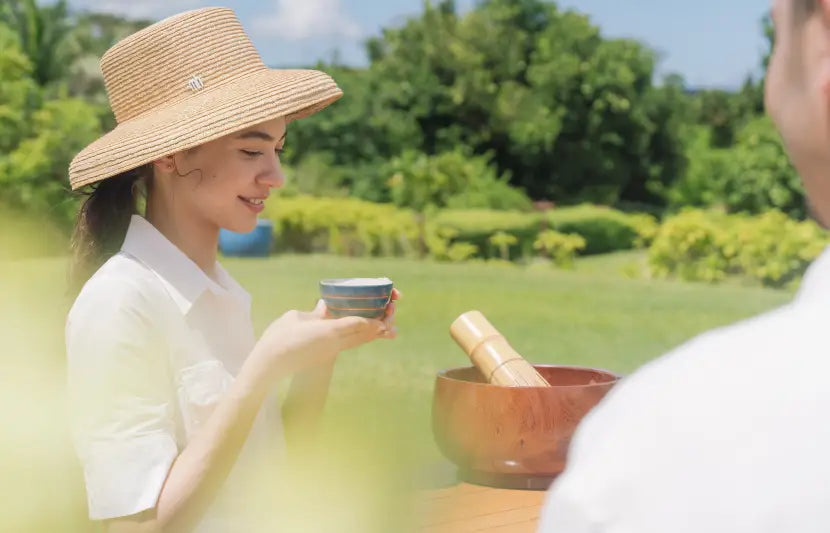雲のような泡をこんもりとのせたブクブクー茶は、琉球王朝時代から伝わる伝統のお茶です。王朝時代には賓客をもてなす際に振る舞われていたという、歴史や作法も学びながらお召し上がりください。
