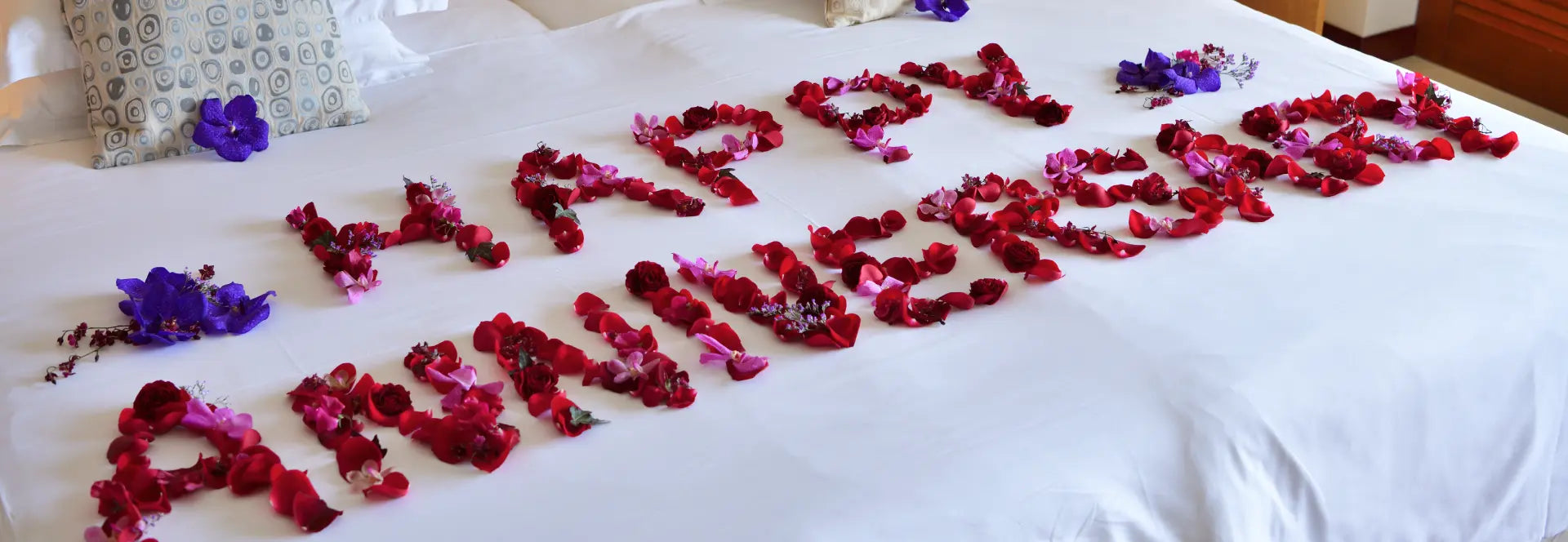 Use the bed as your canvas to leave an anniversary or other message written in fragrant flower petals—and imagine the look of surprise and delight from the moment you step into the room. Our floral artist will render your words in a one-of-a-kind display that won’t soon be forgotten.