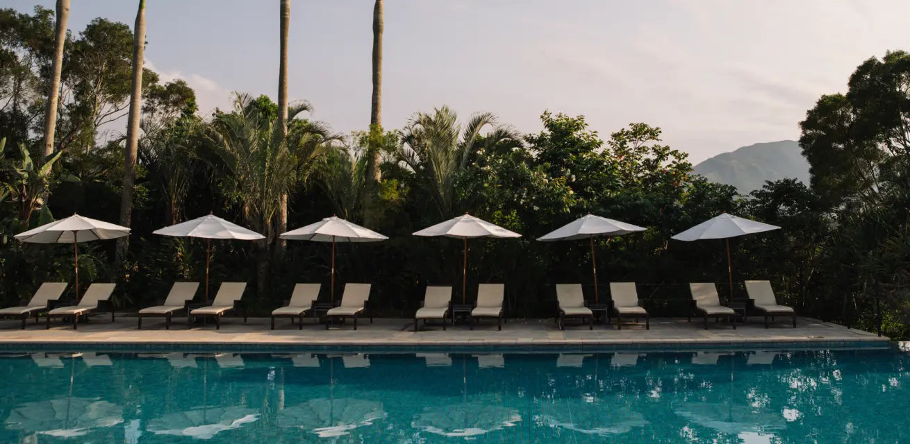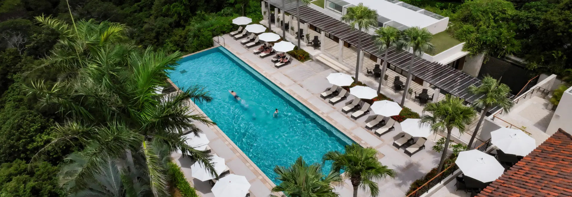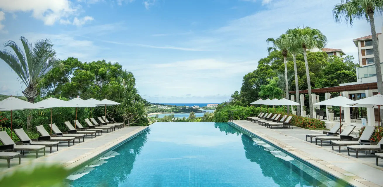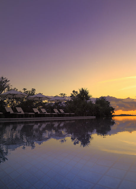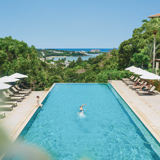 森と海と空が織りなす絶景に、一瞬で心奪われる。深緑に囲まれたインフィニティプールで移ろう景色に身をゆだね、自然と一体になる贅沢な時間をお過ごしください。