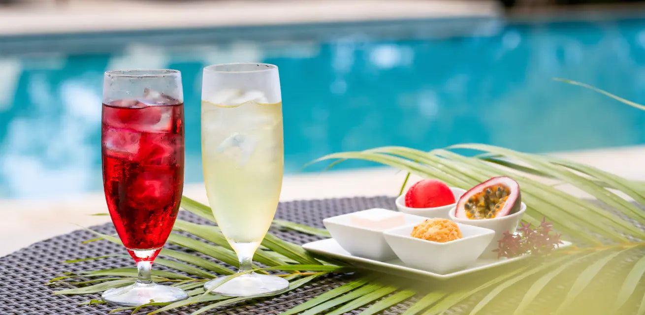 夕日に染まる幻想的な空を眺めながら、ディナー前の気持ちを高める贅沢なアペリティフタイム。シャンパンやカクテル、アペタイザーをご用意しております。