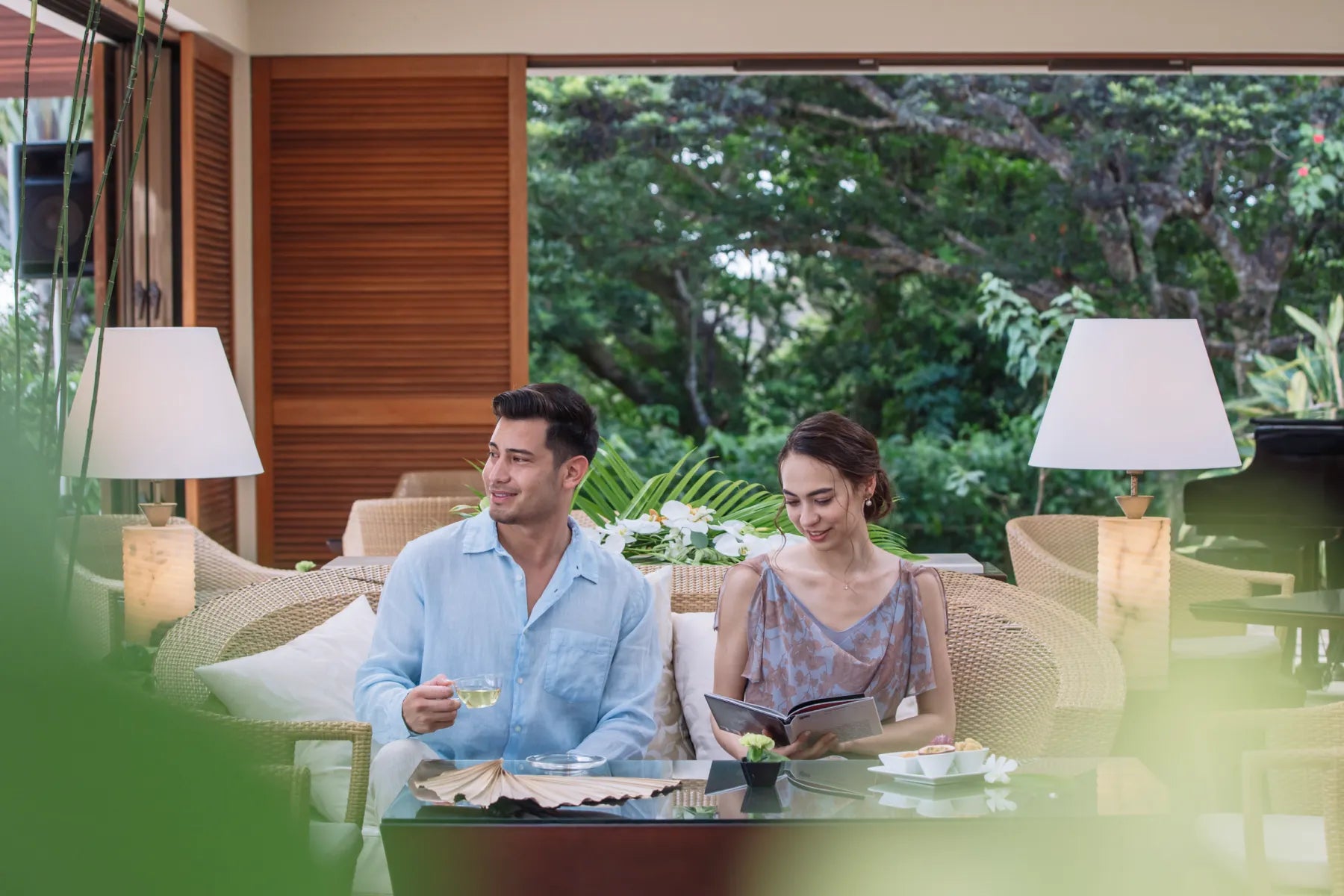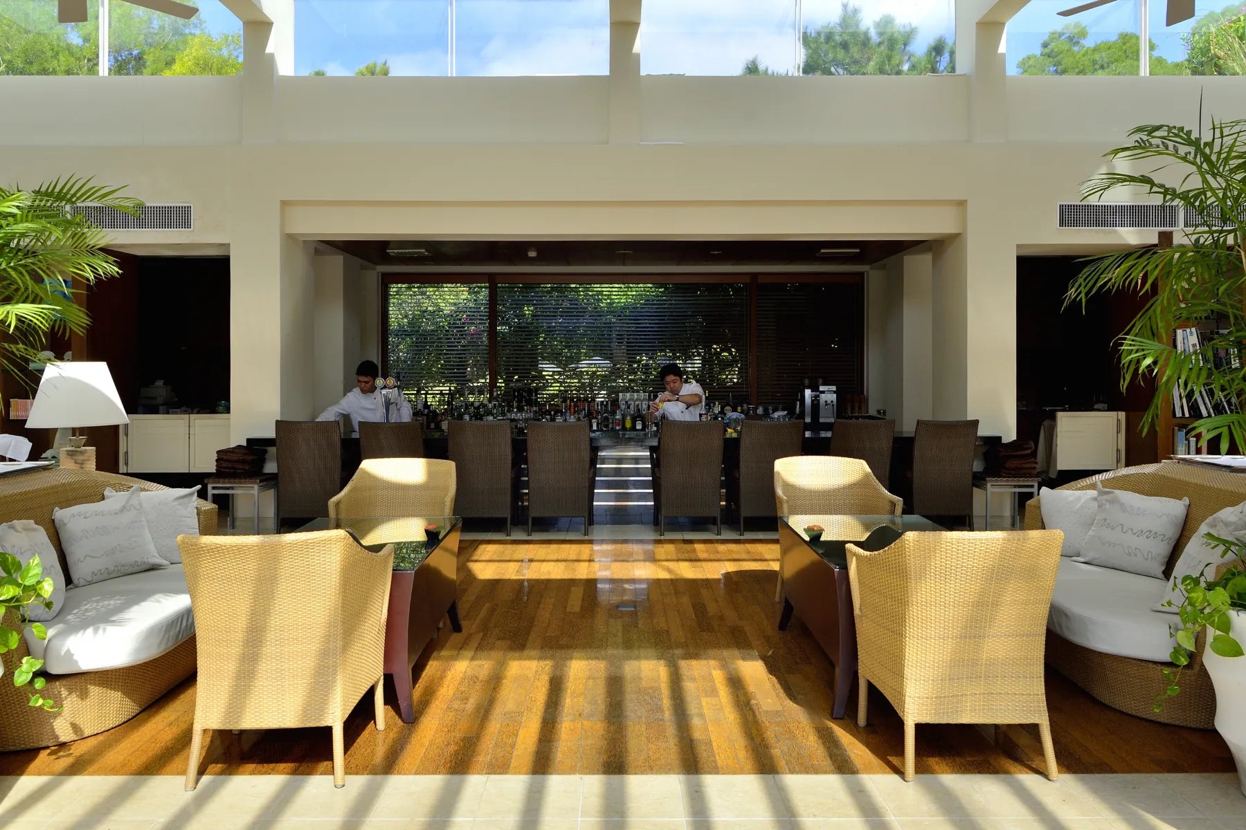 ライブラリーを備えたラウンジでは、ランチタイムやティータイム、夕暮れを彩るアペリティフ、お休み前のナイトキャップまで、思い思いの時をお楽しみいただけます。自家農園で採れる素材を用いた季節のカクテルは格別。森に囲まれた心地よい空間で、大人のための上質な時間に満たされます。