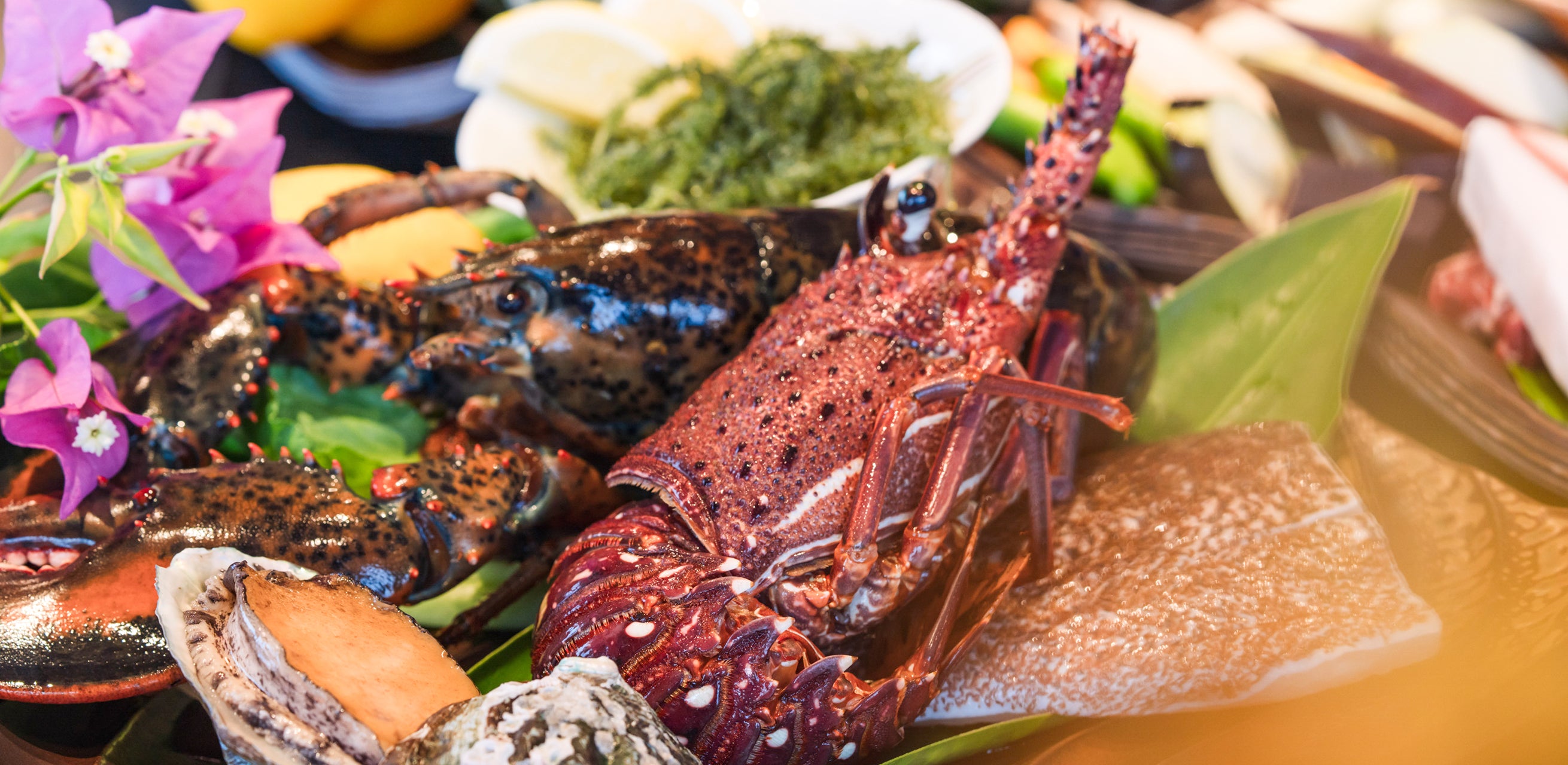 シェフとの会話を楽しみながら、目の前で調理する巧みな技と食欲を刺激する香りに心躍らせて。選りすぐりの食材と自家農園で収穫した野菜など、素材の旨みを堪能する贅沢なひとときをお過ごしください。